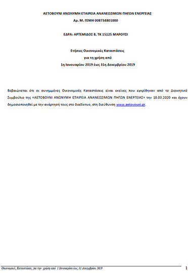 ΑΕΤΟΒΟΥΝΙ ΜΟΝΟΠΡΟΣΩΠΗ ΑΝΩΝΥΜΗ ΕΤΑΙΡΕΙΑ ΑΝΑΝΕΩΣΙΜΩΝ ΠΗΓΩΝ ΕΝΕΡΓΕΙΑΣ