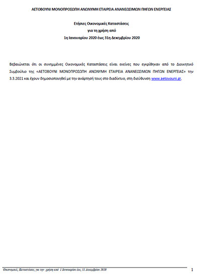 ΑΕΤΟΒΟΥΝΙ ΜΟΝΟΠΡΟΣΩΠΗ ΑΝΩΝΥΜΗ ΕΤΑΙΡΕΙΑ ΑΝΑΝΕΩΣΙΜΩΝ ΠΗΓΩΝ ΕΝΕΡΓΕΙΑΣ